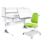 Комплект Anatomica Study-120 Lux парта + кресло + надстройка + органайзер + ящик белый/серый с зеленым креслом Robin