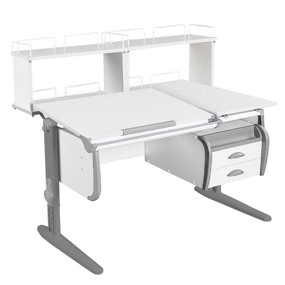 Парта Дэми СУТ-25-04Д2 120 см раздельная с тумбой и надстройками белый/серый/серый каркас