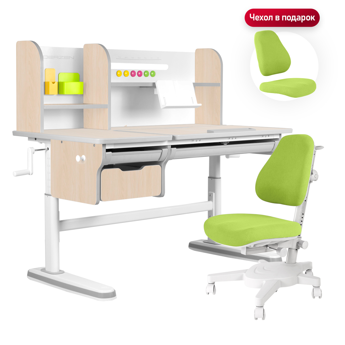 Комплект Kinderzen Dali Plus парта + кресло + надстройка + выдвижной ящик + органайзер + подставка для книг клен/серый с зеленым креслом Armata